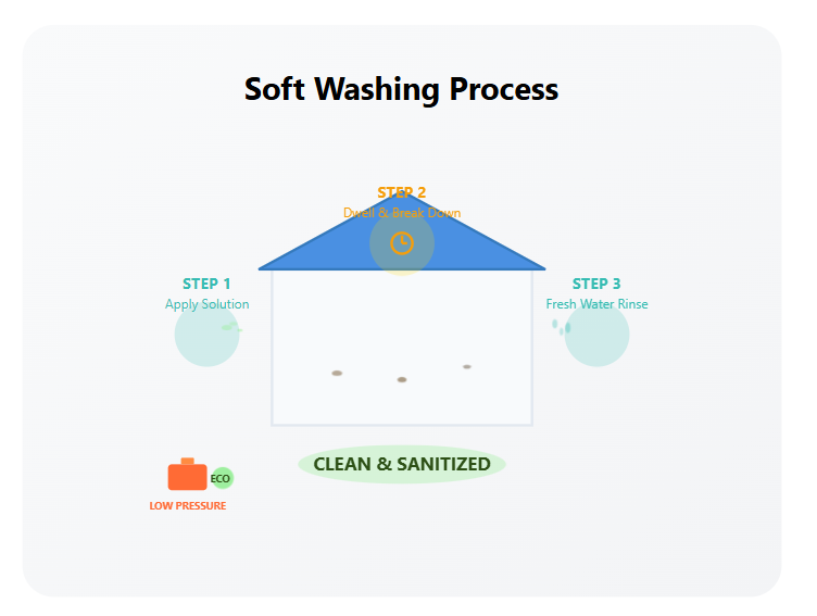 No risk of siding damage or water forced behind panels. Gentle yet effective cleaning.