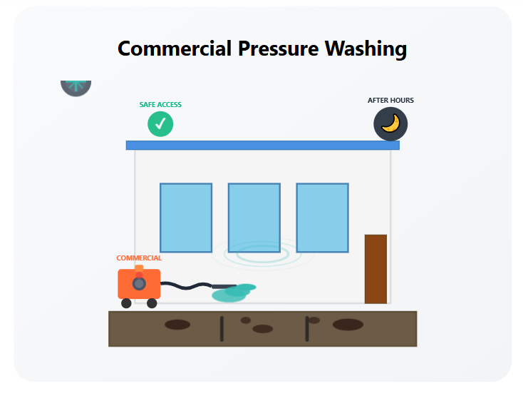 Commercial Benefits: Improve customer safety, enhance business appearance, and maintain professional standards with regular pressure washing services.