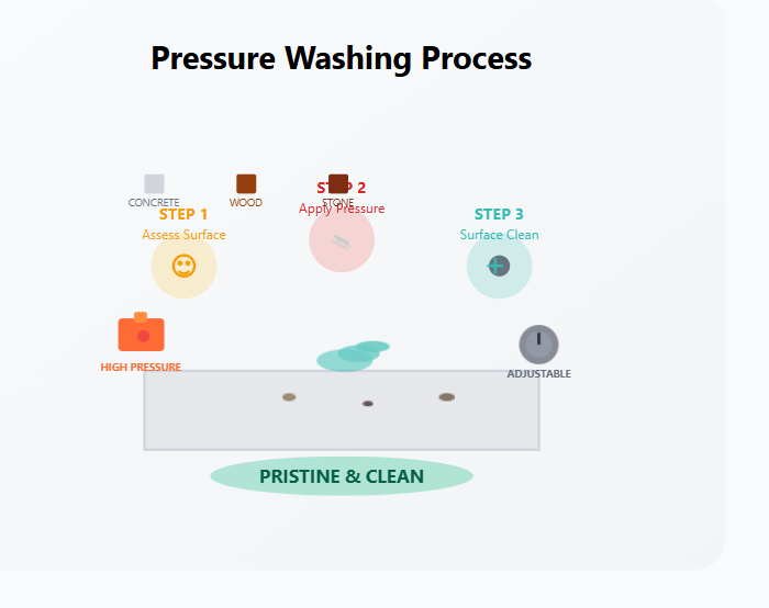 We adjust pressure levels for each surface type - high pressure for concrete, gentler settings for wood decks.